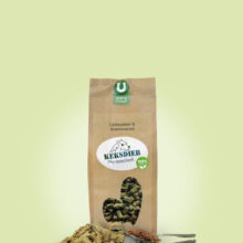 Zutaten: Haferflocken, Weizenvollkornmehl, Rapsöl, Bio-Leinsamenmehl (entölt und gemahlen) 4 %, getr. Brennnessel 2 %, Bio-Leinsamen 1 %